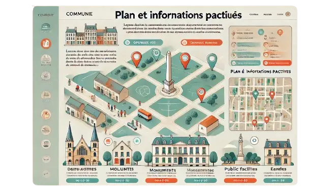 Carte de la commune avec informations pratiques (horaires de visite, coordonnées).
